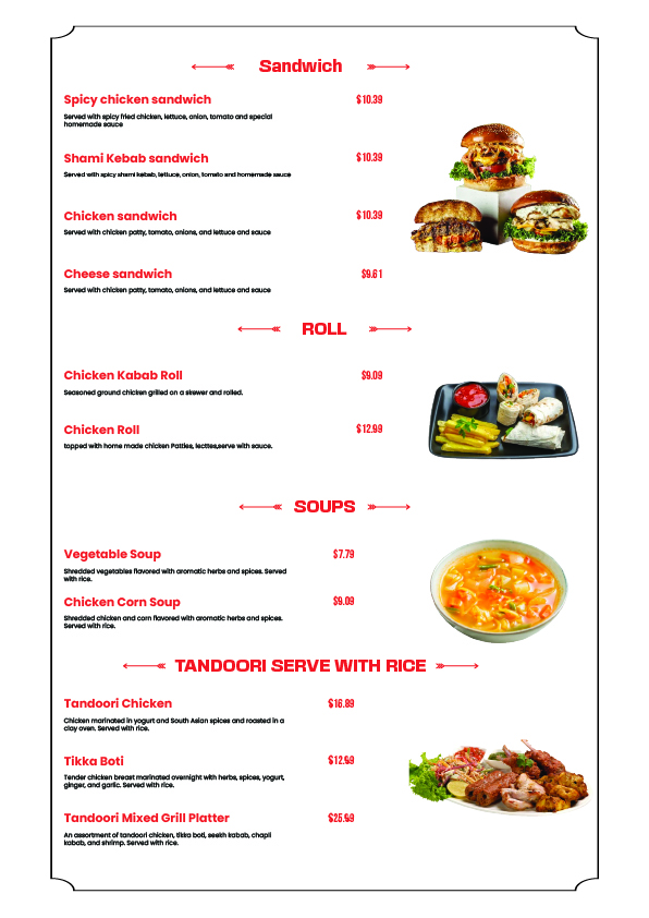 Lazzat’s menu is a rich blend of bold flavors and comforting dishes, ensuring there's something for everyone to enjoy, whether you're in the mood for a quick snack or a full-course meal.